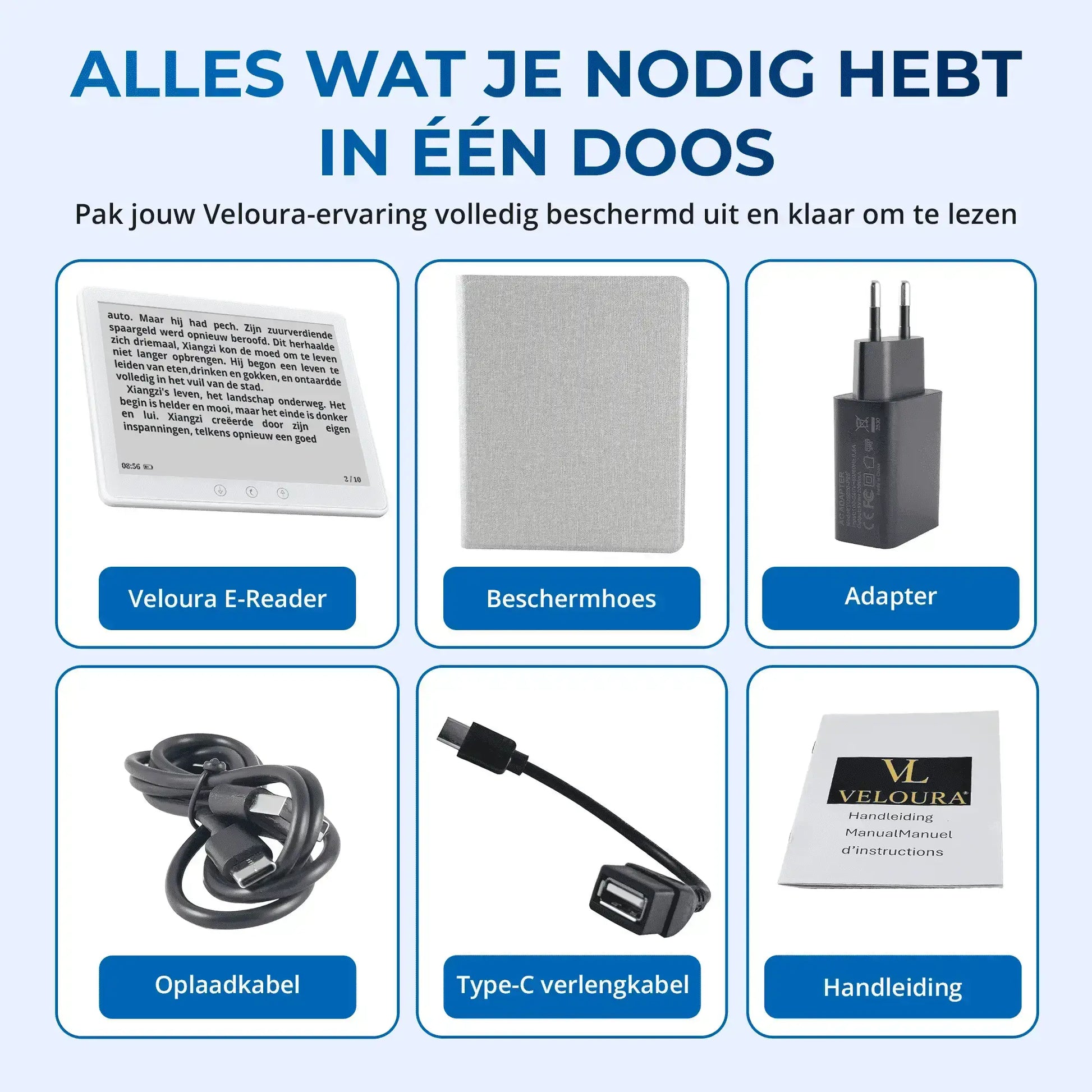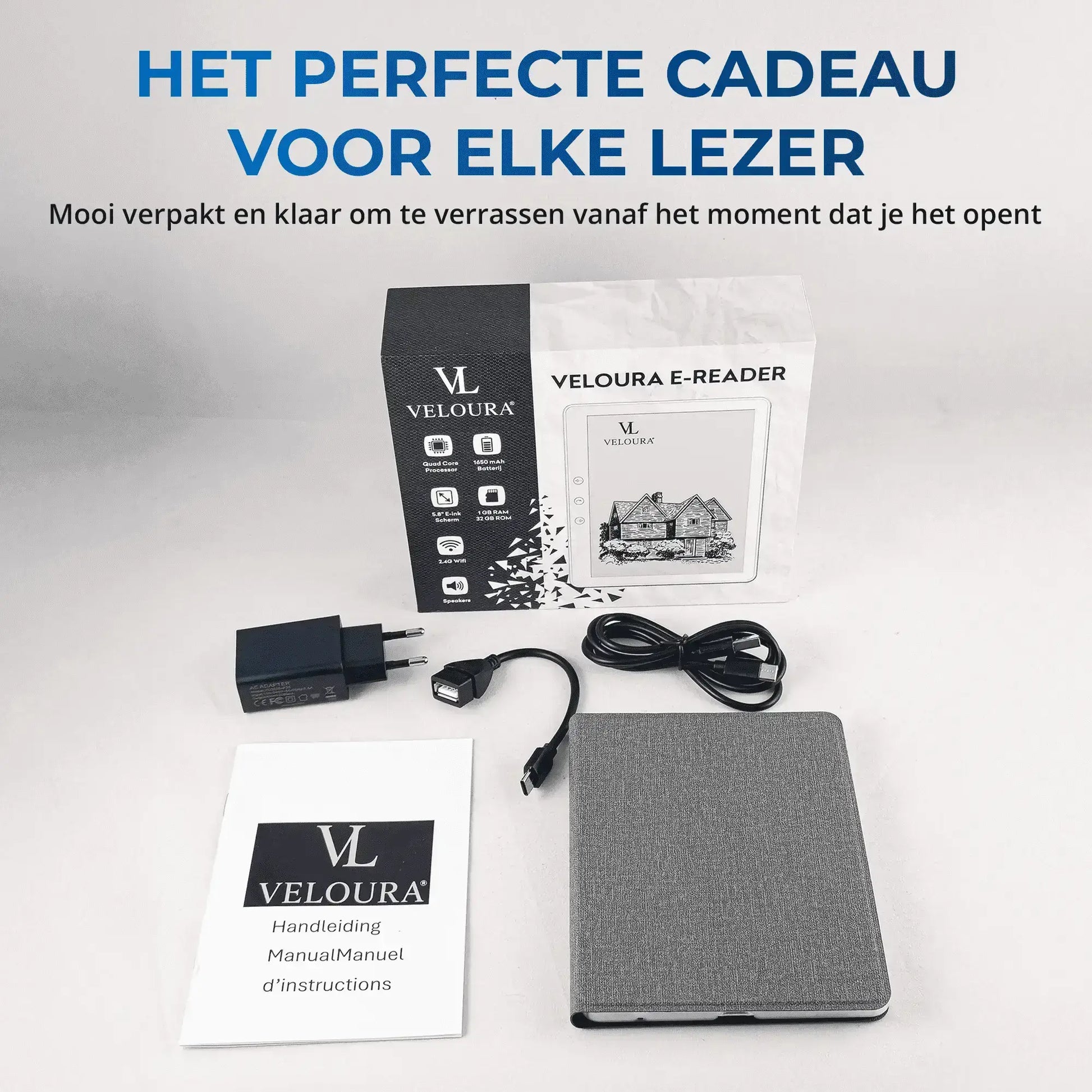 Ontsnap aan de dagelijkse drukte en duik in je favoriete verhalen met de Veloura E-Reader. Wacht niet langer, bestel vandaag nog en neem duizenden boeken overal met je mee!